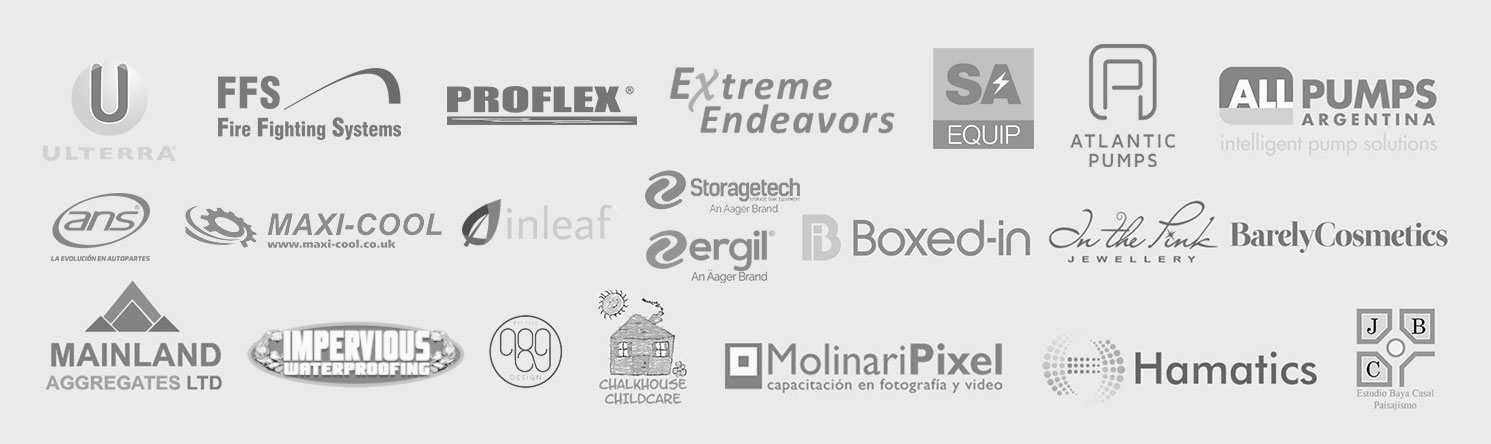 Companies that keep trusting in our services: All Pumps Argentina, Barely Cosmetics, Mainland Aggregates LTD, Chalkhouse Childcare, Boxed-in, In the Pink Jewellery, Enroc Illustration, Molinaripixel, Hamatics, Lepar POP, Jorge Baya Casal
